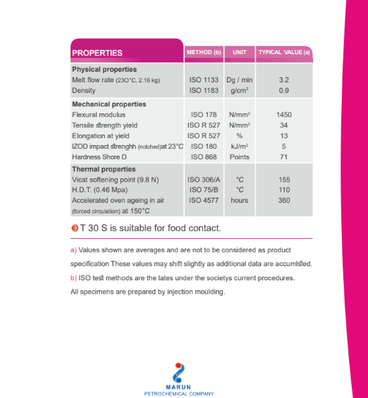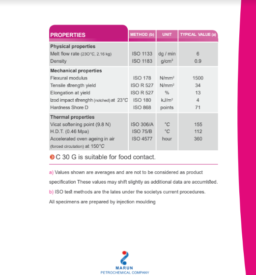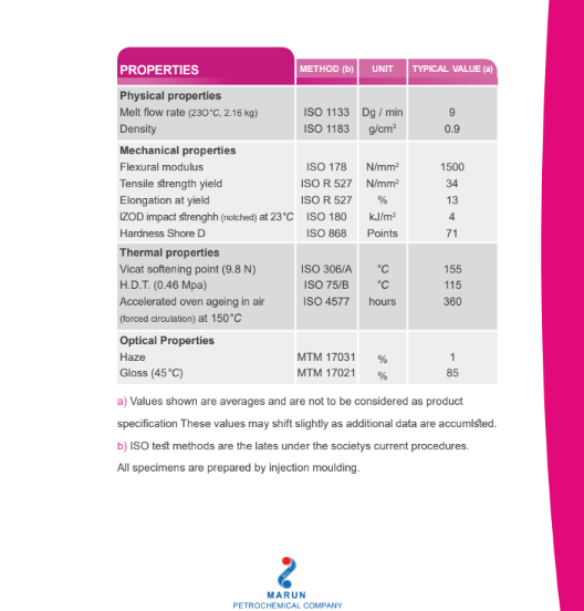 واحد پلی پروپیلن شرکت پتروشیمی مارون با ظرفیت تولید 300,000 تن در سال توانایی تولید انواع گریدهای پلی پروپیلن را دارد. ارزش این حجم از تولید زمانی مشخص خواهد شد که گفته شود میزان تولید پروپیلن در شرکت پتروشیمی مارون با مجموع تولید این محصول در چهار شرکت ایرانی مشابه که پیش از این به بهره برداری رسیده بودند، برابری می کند. پتروشیمی مارون نخستین تولید کننده گرید PP HIFAX در ایران است که این کوپلیمر هتروفاز کاربرد گسترده ای در صنعت خودرو سازی دارد. ساایر محصولات این واحد در تولید لوله، الیاف نساجی، لوازم خانگی، اسباب بازی، قطعات الکترونیکی، لوازم تحریر، پوشش کابل، تور و وسایل ماهیگیری، مبلمان و هزاران استفاده دیگر کاربرد فراوان دارند. شرکت پتروشیمی مارون قادر به تولید بیش از 90 نوع از گرید های پلی پروپیلن شامل هموپلیمر، کوپلیمرهای رندوم، کوپلیمرهای هتروفاز(ضربه پذیر) است.